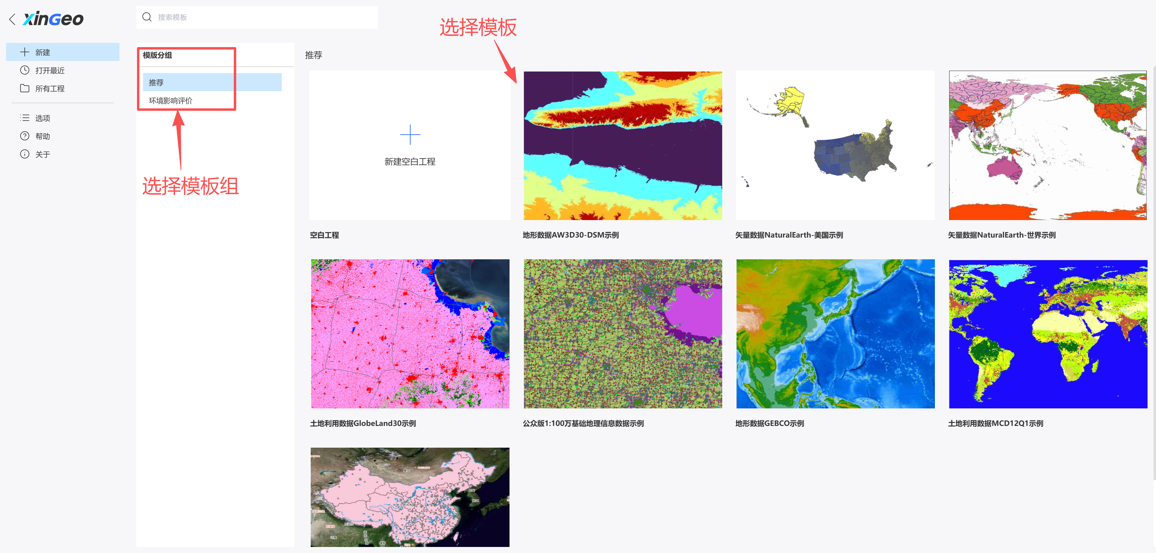 登录昕图平台后,首先新建工程项目,可以新建空白项目,也可以根据需求使用平台提供的模板。